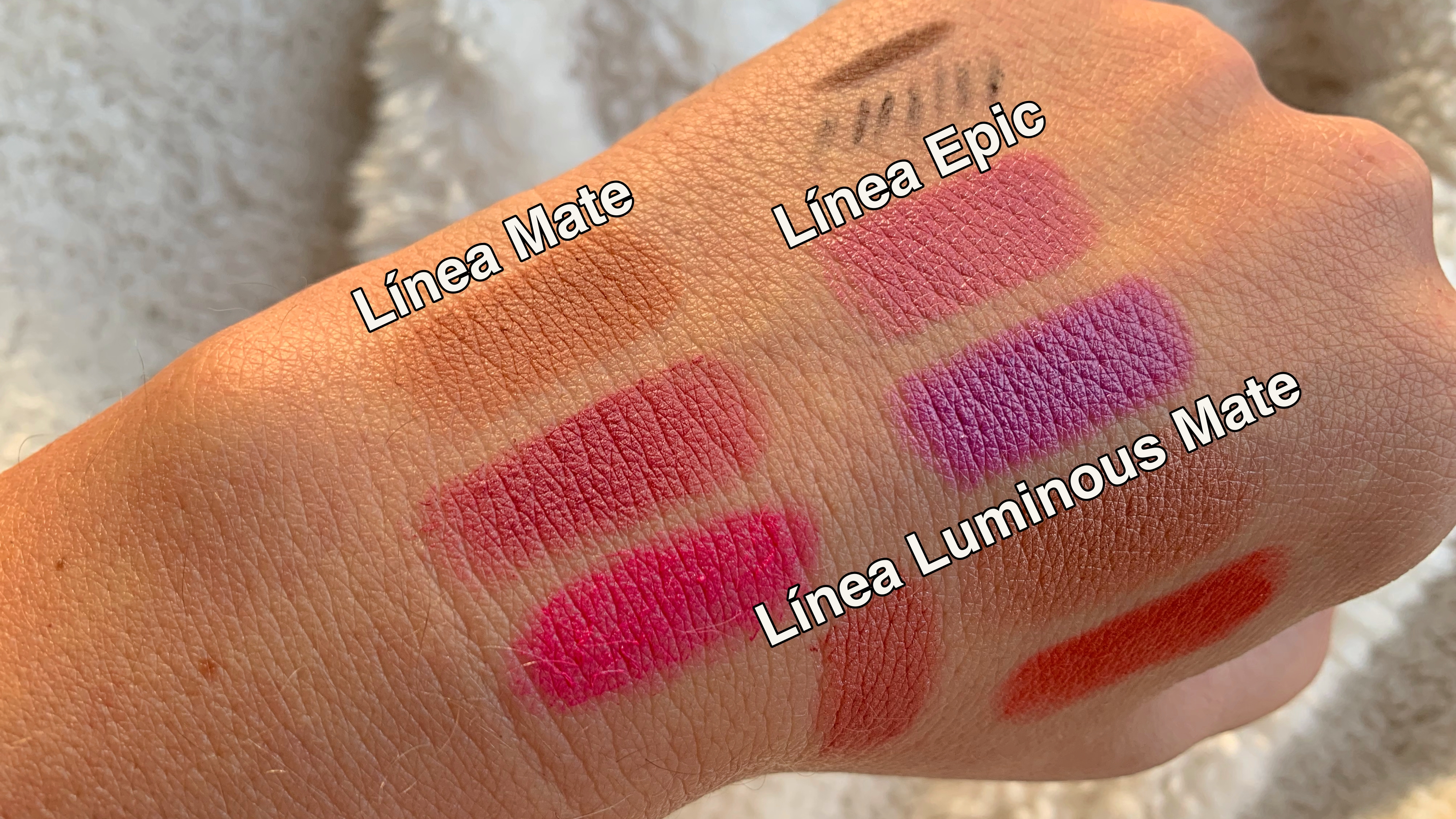 Todos los «swatches» los hice con 1 sola pasada. Las 3 líneas son muy pigmentadas.