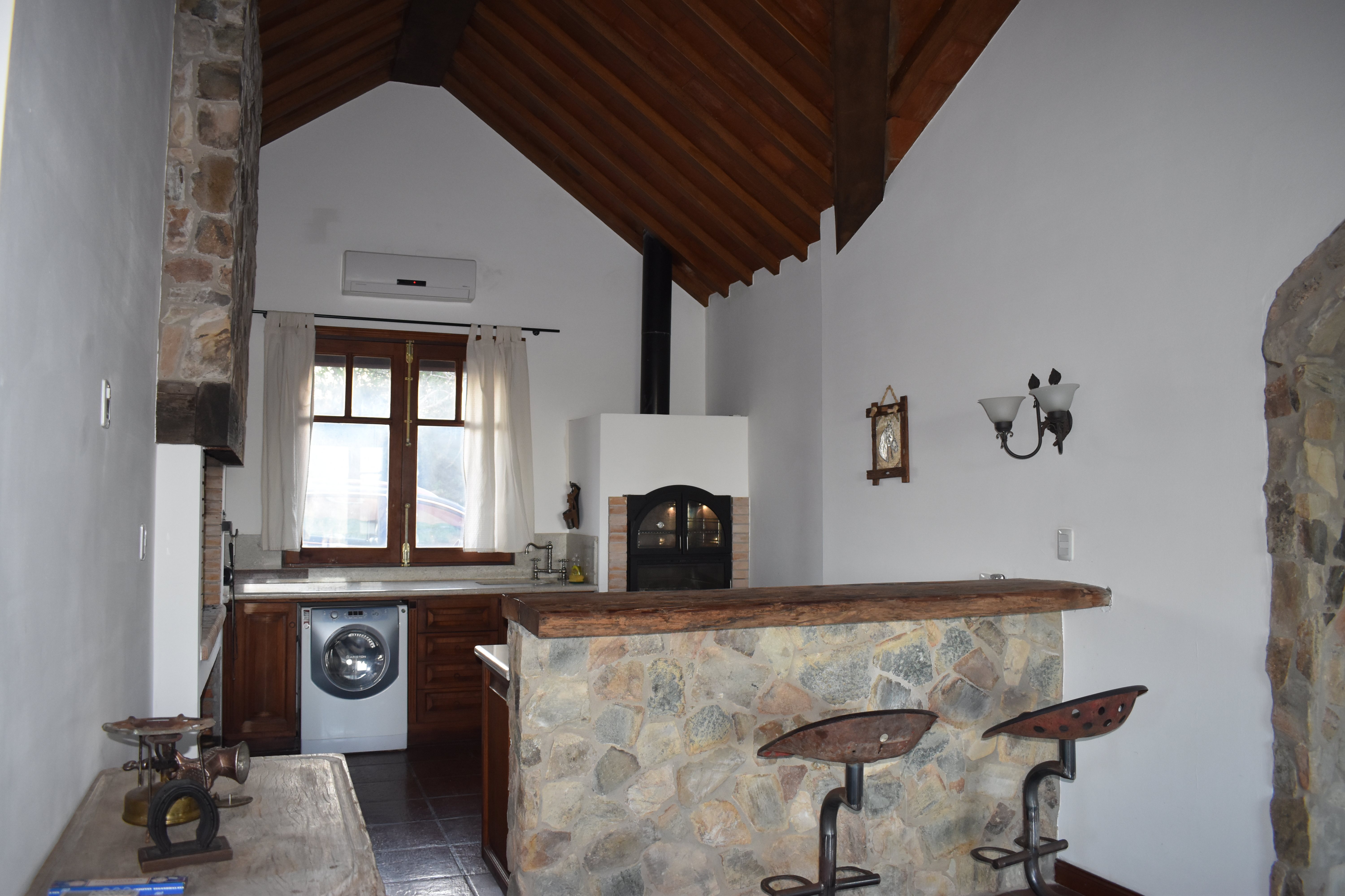 El living es super amplio con estufa a leña, el comedor tiene una mesa larga para unas 12 personas, la cocina es un sueño! tipo americana, con horno, doble heladera, micro, isla central. Parrillero interior y horno para pizzas. 3 dormitorios amplios con baño en suite. Espacio de entretenimiento con TV con cable, WIFI. En el piso superior mesa de billar. Qué más se puede pedir!?